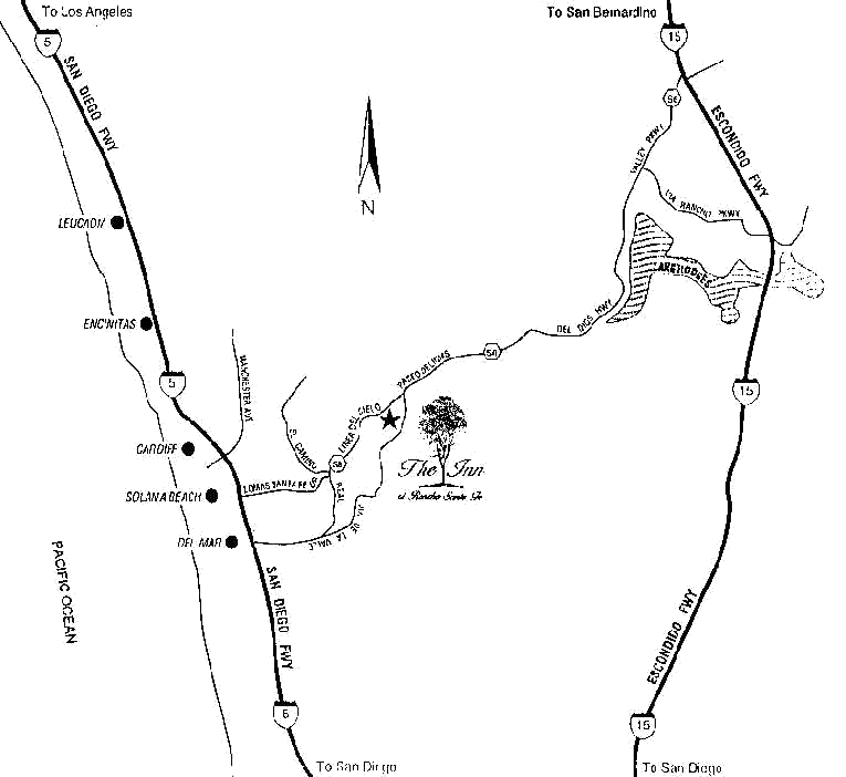 Inland (I-15 North) Exit Via Rancho Pkwy (West) to the Del Dios Highway (West) which becomes Paseo Delicias. Go 12 miles to The Inn |